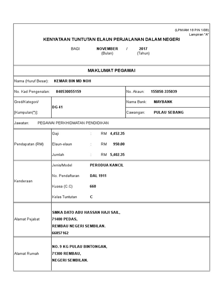 Panduan dan borang tuntutan perjalanan. Tuntutan kereta tuntutan perjalanan tuntutan rumah tuntutan hayat & keluarga tuntutan kemalangan diri tuntutan perubatan produk berkaitan maybank semak status tuntutan. Borang permohonan cuti cuti rehat khas (di bawah pekeliling perkhidmatan bilangan 3 tahun 2005) alamat guru. Untuk maklumat tujuan tuntutan, pilih elaun perjalanan dalam negeri. Membuat tuntutan perjalanan & elaun harian lebih mudah menggunakan kelebihan aplikasi ms excel.