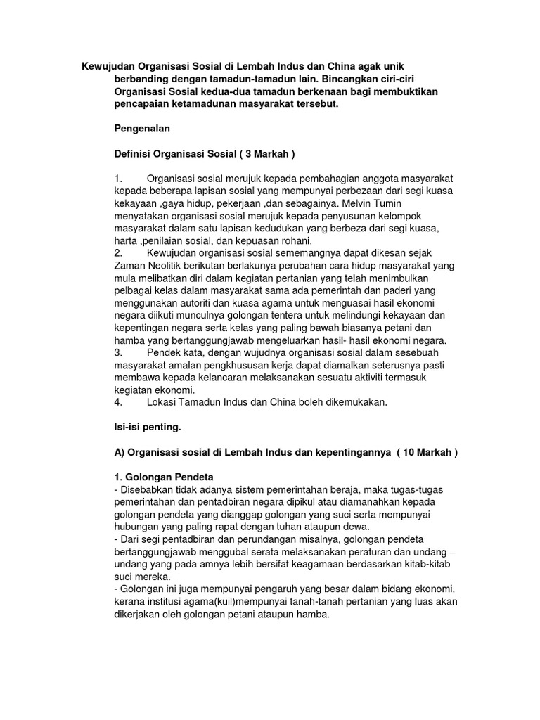 Organisasi Sosial Tamadun Indus - Ø agama sebagai asas sistem pendidikan.. Adanya pengaturan tindakan mengandung pesan implisit bahwa perilaku individu diorganisir sedemikian rupa untuk suatu tujuan tertentu. Organisasi sosial merujuk kepada pembahagian anggota masyarakat kepada beberapa lapisan sosial yang mempunyai perbezaan dari segi kuasa kekayaan. Learn vocabulary, terms and more with flashcards, games and other study tools. Namun para tokoh pergerakan seperti soekarno dan hatta mau bekerja sama. Petani,artisan ,pedagang ( artisan pakar dalam teknologi gangsa dgn menghasilkan.